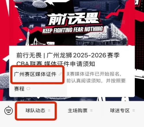 前行無畏廣州龍獅20252026賽季CBA聯(lián)賽媒體證件申請須知